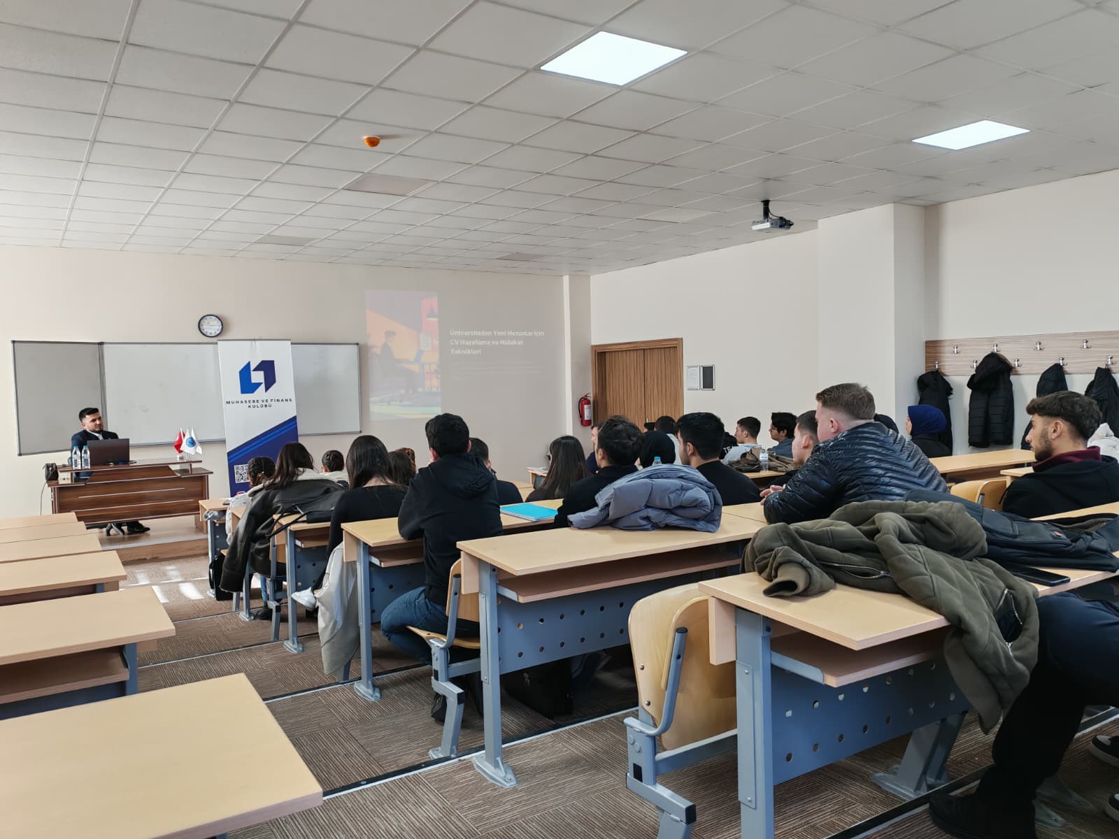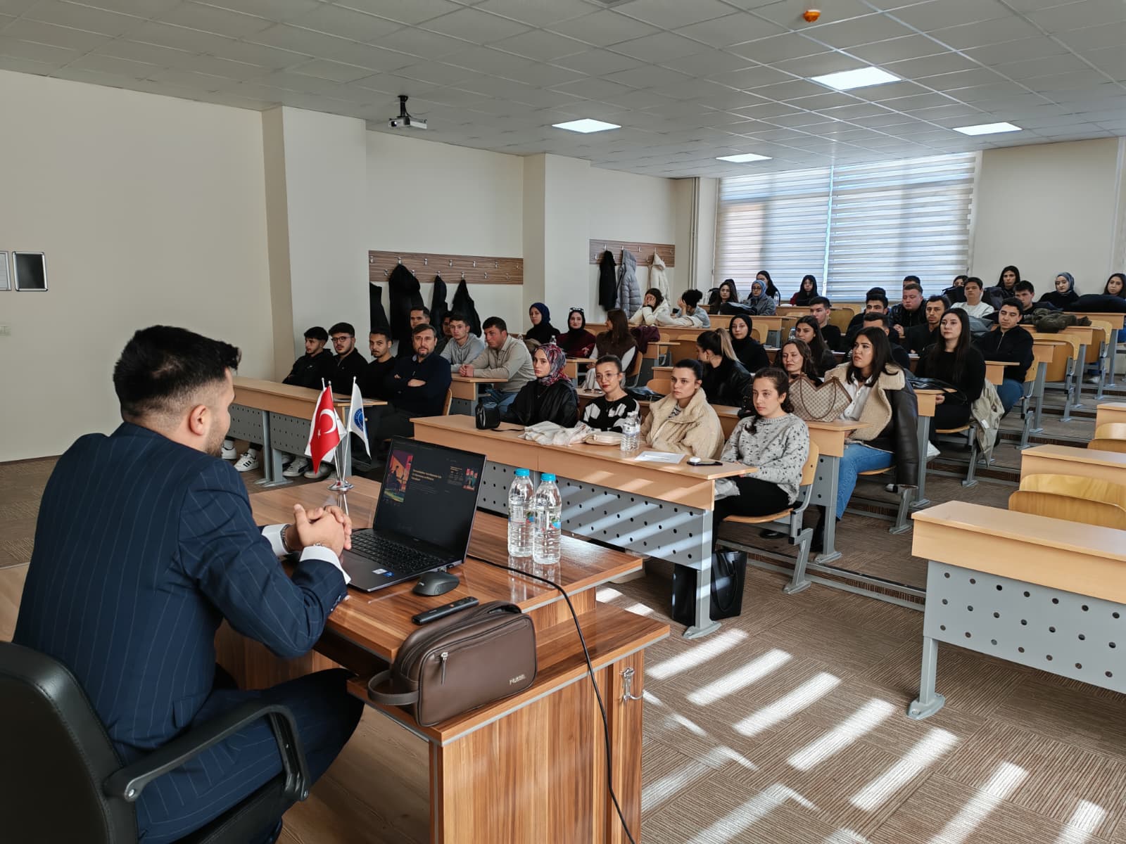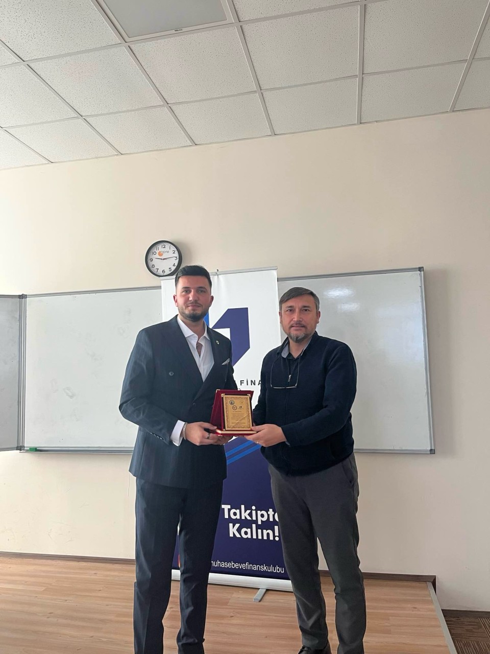 Sn. AKYOL, muhasebe alanında yaşamış olduğu sektör ve mülakat deneyimlerini öğrencilerle paylaşırken aynı zamanda güncel mülakat teknikleri ve etkili özgeçmiş hazırlamayla ilgili tavsiyelerde bulunmuştur. Söyleşinin son kısmında ise soru-cevap gerçekleştirilmiş ve Muhasebe ve Finans Yönetimi Bölümü Öğretim Üyesi Doç. Dr. Kenan İLARSLAN tarafından Sn. AKYOL’a plaket takdim edilmiştir.